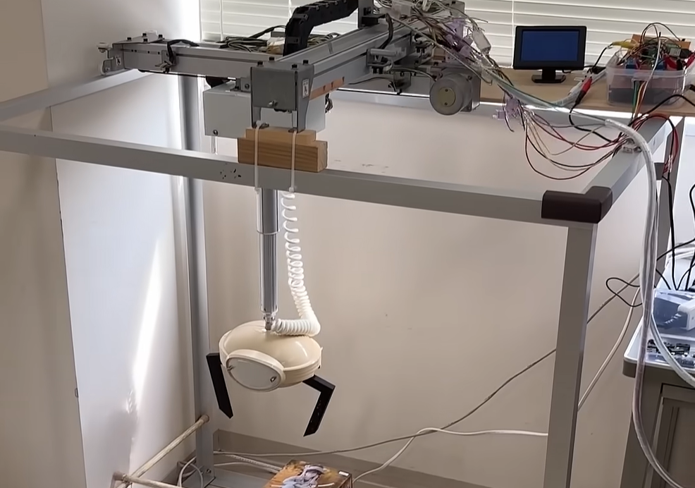 ジャンク品としてX、Y、Z軸のみの筐体の一部しかない状態でしたが、ホームセンターで入手可能な材料や電気部品、マイクロコントローラー(以下マイコン)を駆使して動かすことに挑戦しました。